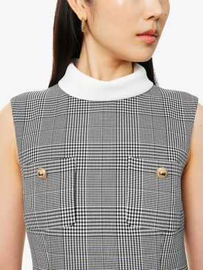 Check-Print Sleeveless Stretch-Woven Mini Dress