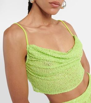 Crystal-Trim Stripe Wool-Blend Knitted Top