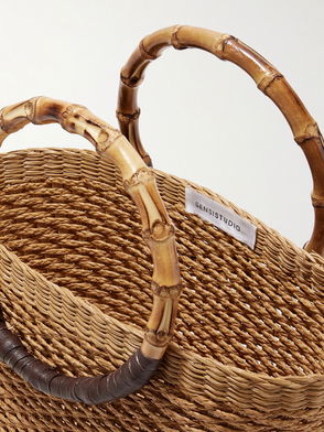 Shiga Medium Leather-trimmed Sisal Shoulder Bag