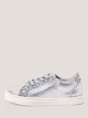 Kids' Volley Metallic Leather Trainers, Silver Pekin