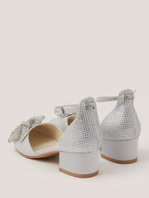 Kids' Two-Part Bow Heeled Shoes, Silver