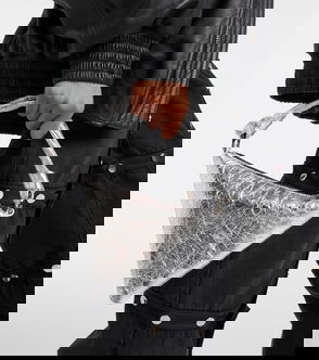 Beaded Removable Strap Shoulder Bag In Silver