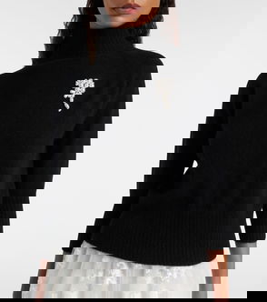 Embellished Tulle-Paneled Crepe De Chine Midi Dress