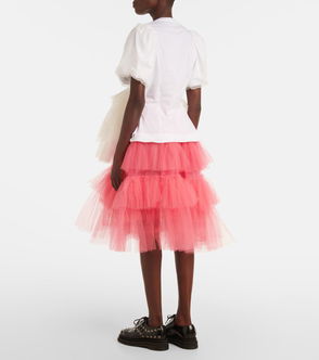 Embellished Tulle-Paneled Crepe De Chine Midi Dress