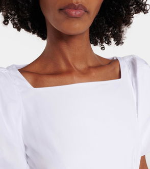 Cropped Puff-sleeve Cotton Poplin Shirt