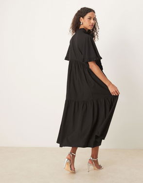 Puff Sleeve Bubble Hem Maxi Dress In Black