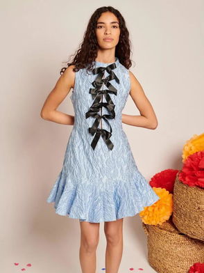 Dream Blooming Jacquard Mini Dress In Cornflower Blue