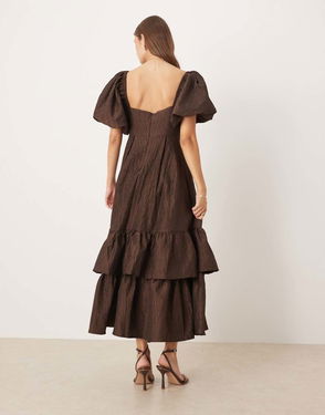Dream Antique Textured Jacquard Midi Dress In Brown