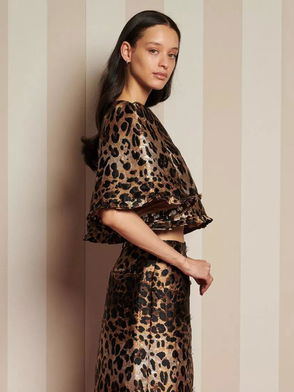 Leopard Print Jacquard Crop Top, Brown/Multi