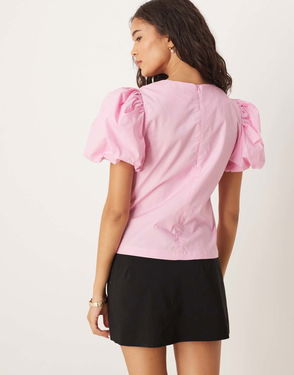 Dream Crinkle Peplum Top With Diamonte Bow In Pink