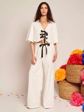 Short Sleeve Bow Detail Broderie Heart Cotton Top, White