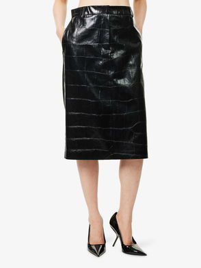 Panelled Crocodile-Embossed Faux-Leather Midi Skirt