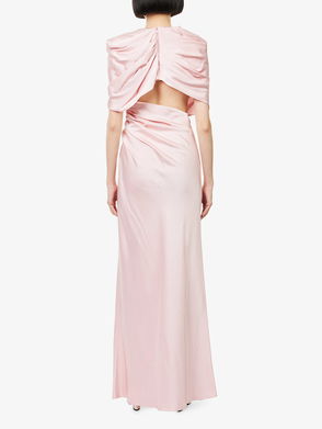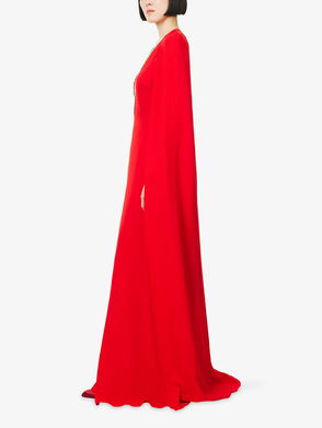Asymmetric Cape-Effect Stretch-Satin Gown