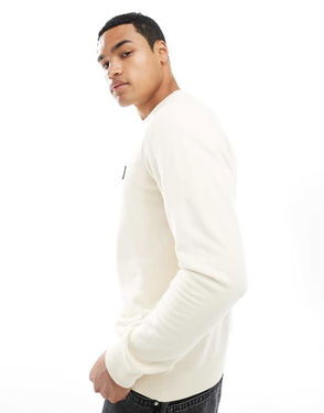Cotton Blend Micro Logo Crew Sweatshirt, Deep Beige Slub