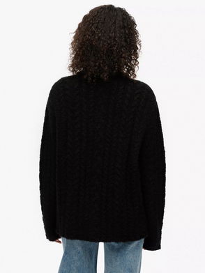Cotton Chunky Ribbed Crew Neck Jumper, Black