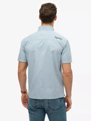 City Cotton Linen Blend Short Sleeve Shirt, Sky Blue Chambray