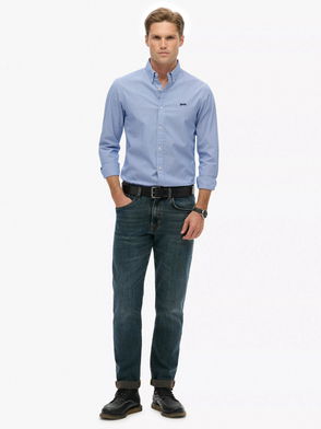 Classic Oxford Long Sleeve Shirt In Azure Blue Chambray Oxford
