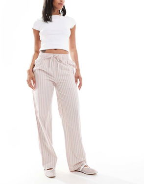 Cotton Stripe Elasticated Trousers In Suffolk Pink Stripe