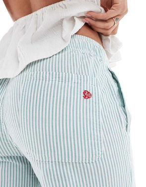 Cotton Stripe Elasticated Trousers In Peppermint Chalk Stripe