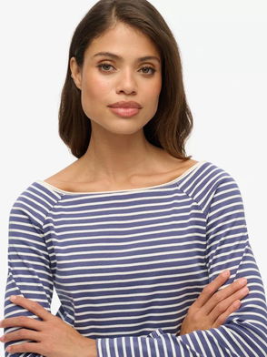 Bardot Off Shoulder Stripe Top, Mariner Navy Stripe