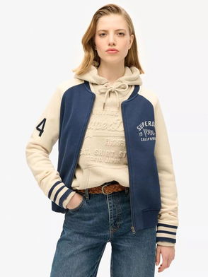 Venue Logo Striped Relaxed Hoodie, Blue Navy Marl