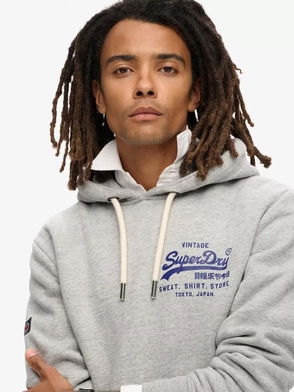 Classic Vintage Logo Hoodie, Athletic Grey Marl
