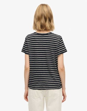 Studios Stripe Slub Embroidered T-Shirt, Navy/Optic