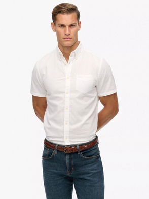City Cotton Linen Blend Short Sleeve Shirt, Sky Blue Chambray