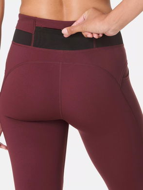 Power 7/8 Piping Exercise Leggings, Garnet Red