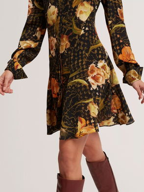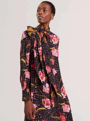 Elann Floral Print Pussybow Tie Neck Midi Dress