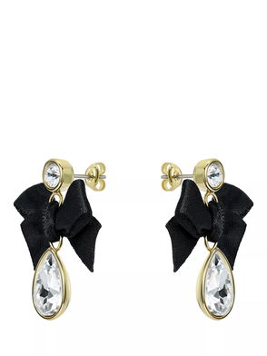 Ritala Ribbon Bow Crystal Drop Earrings, Gold/Black