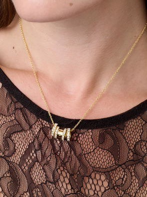 Ribah Crystal Ribbon Bow Pendant Necklace, Gold