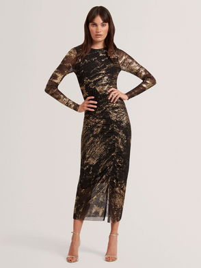 Nohaa Foil Long Sleeve Bodycon Dress, Black/Multi
