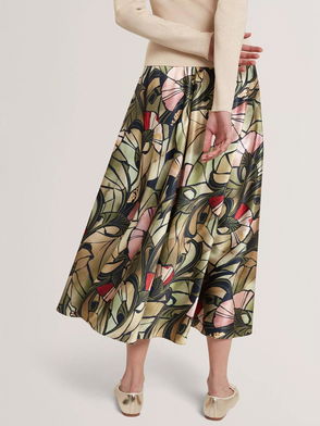 Zanzah Cotton Poplin Midi Skirt, Navy