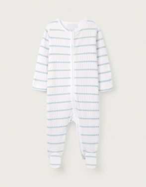 Organic Cotton Blend Blue Stripe Rib Sleepsuit