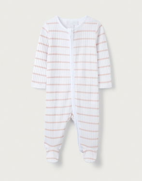 Organic Cotton Pink Stripe Rib Sleepsuit