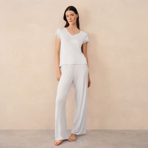 Brushed Jersey Rib Tie-Hem Pyjama Set