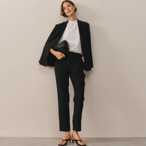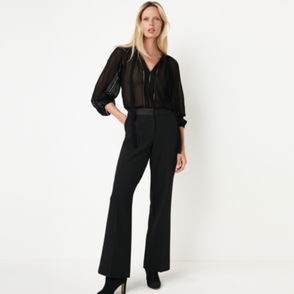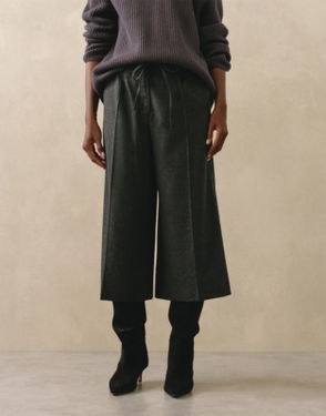 Linen Stitch Detail Cropped Wide Leg Trousers