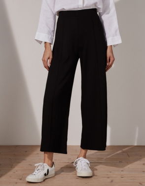 Linen Stitch Detail Cropped Wide Leg Trousers