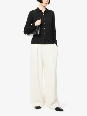 Relaxed-Fit Long-Sleeves Suede Shirt