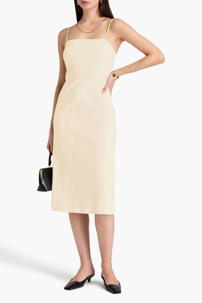 Cinched-Waist Sleeveless Stretch-Cotton Blend Shirt