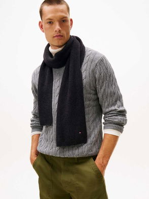 Hilfiger Flag Embroidery Ribbed Scarf In Grey