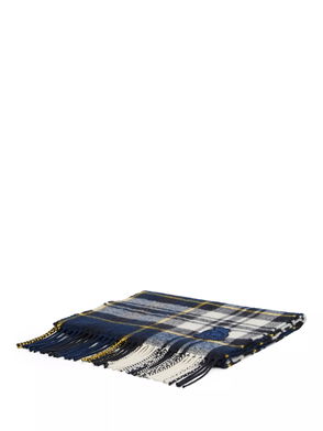 Wool Cashmere Blend Crest Check Scarf, Preppy Navy