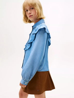 Kids' Cotton Check Long Sleeve Ruffle Mini Dress