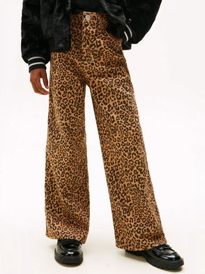 Kids' Wide Leg Leopard Print Denim Jeans, Multi