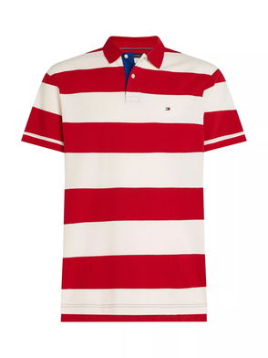 Cotton Blend Regular Fit Block Stripe Polo Shirt, Med Red/Ivory Petal