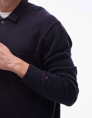 Zip Long Sleeve Rugby Polo Shirt In Navy