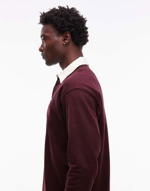Crest Logo Long Sleeve Rugby Polo Shirt In Burgundy