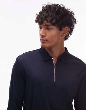 Zip Long Sleeve Rugby Polo Shirt In Navy