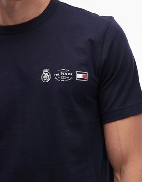 Cotton Slim Fit Short Sleeve Linear Logo T-Shirt, Dark Navy